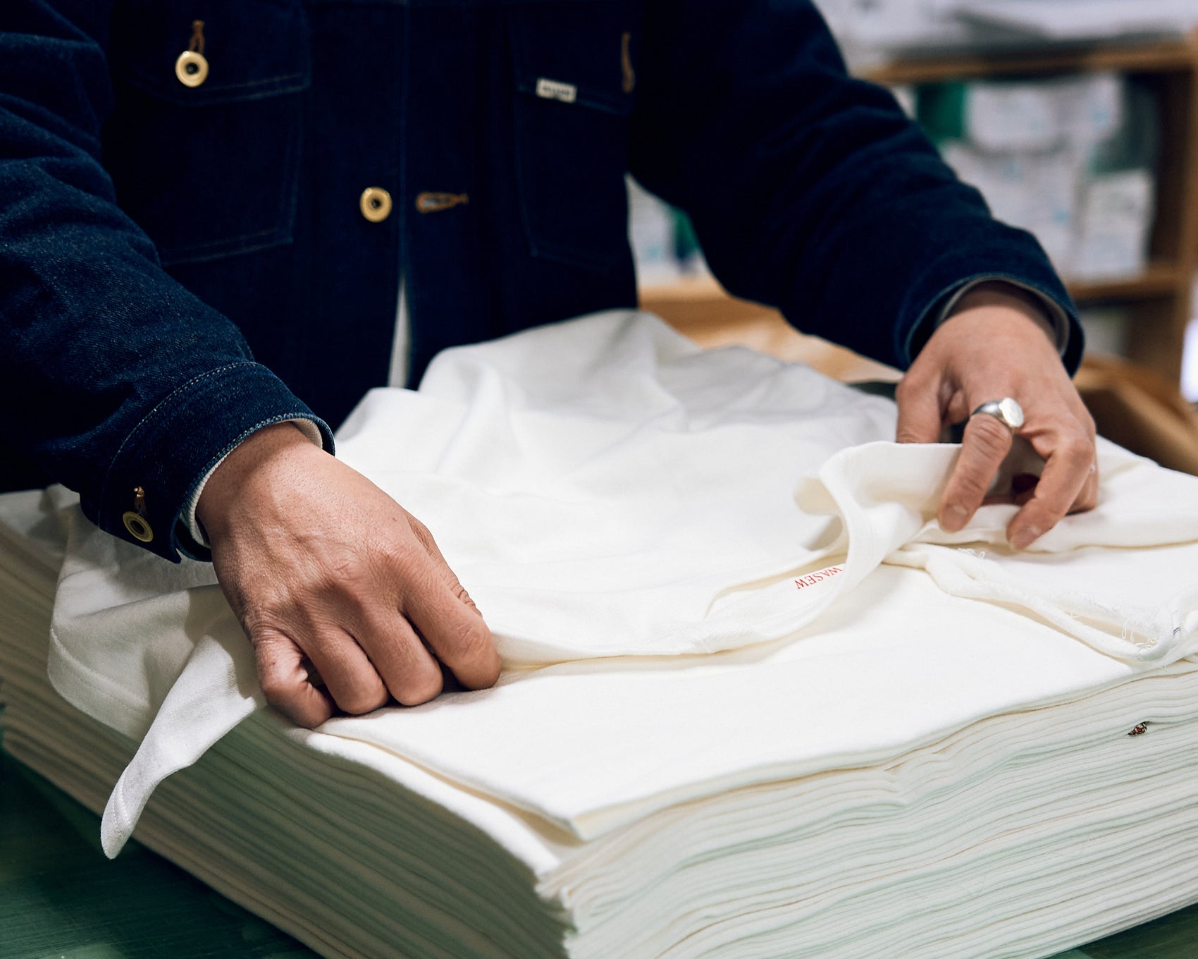 In 2012, he founded his own sewing company "GGG". Six years later, in 2018, he reached a turning point. After three years of planning, the ideal T-shirt fabric was finally completed using a loopwheel knitting machine called Tsuriami in Wakayama. He decided not to establish his own brand until he created this fabric.